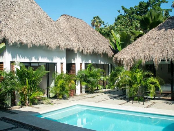 6 bungalows situated around a pool. Our bungalows are unique in Sayulita with woven exterior walls and thatch roofs.